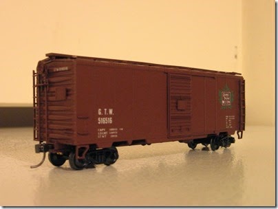 Grand Trunk Western boxcar #516516 is another old Front Range kit, assembled per the instructions.