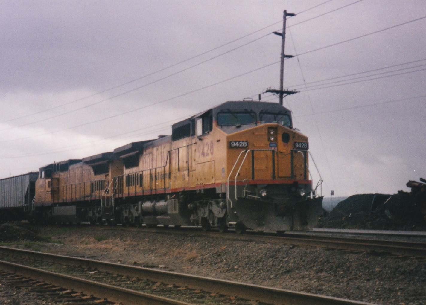 These pictures were taken while railfanning in Portland, Oregon, in March, 1997. Starting at Burlington Northern's Hoyt Street Yard, we find Atchison, Topeka & Santa Fe #606, a 4,380-horsepower Dash 9-44CW that was built by General Electric in February 1994. Before the BNSF merger, Santa Fe's "Warbonnet" locomotives were rarely seen in the Pacific Northwest, but since the merger they were becoming somewhat more common.